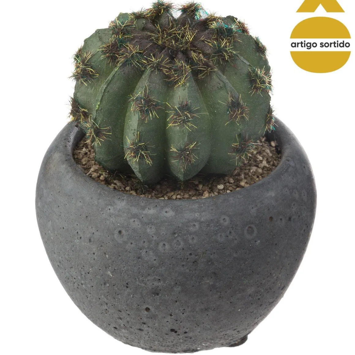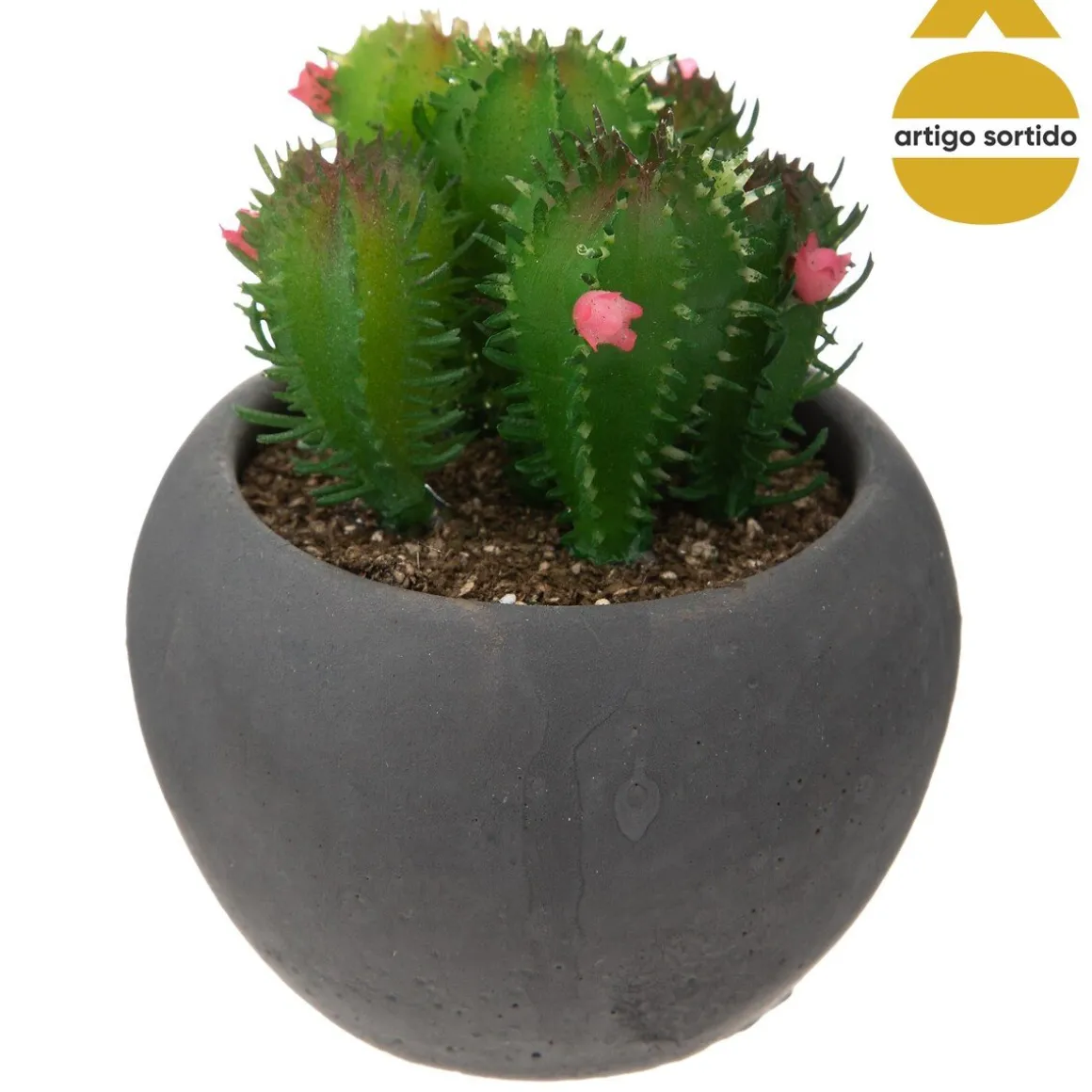 Vaso de cimento preto com cato 8cm