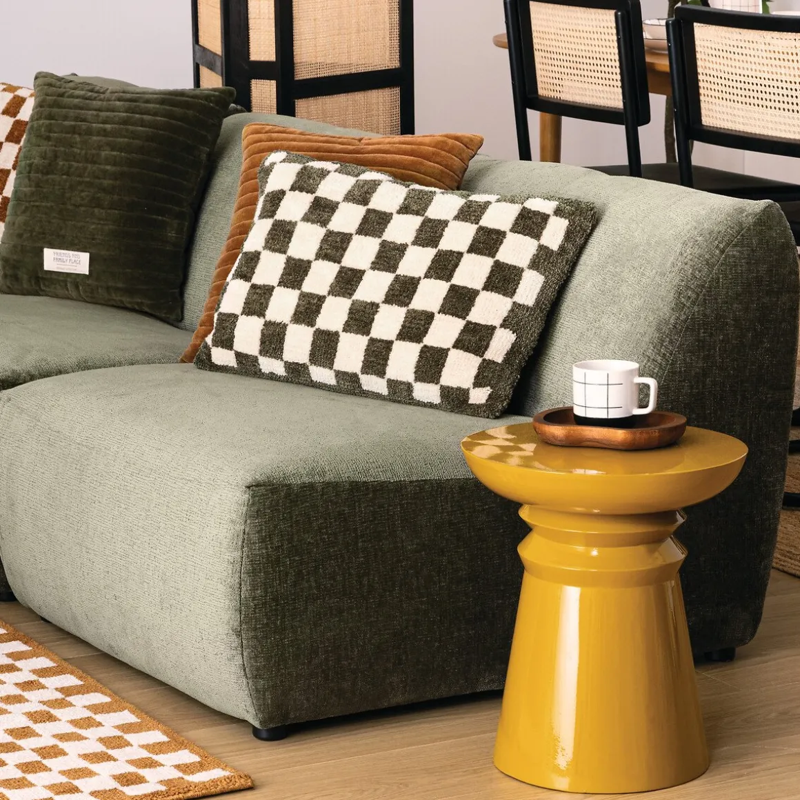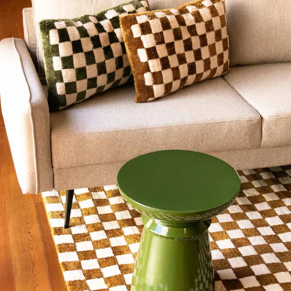 Almofada AUTOMNE xadrez verde caqui 38x58cm