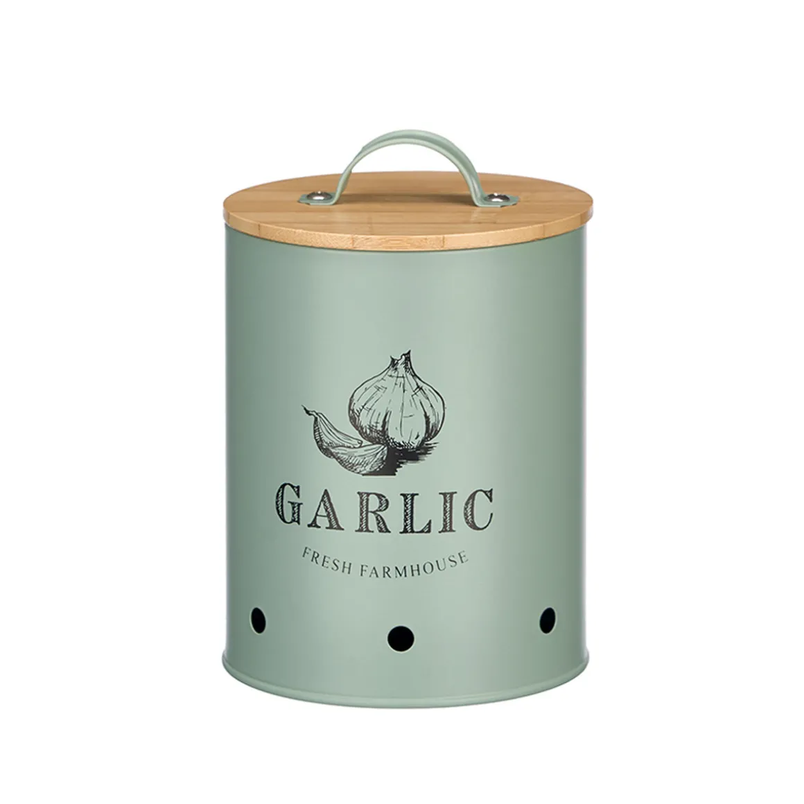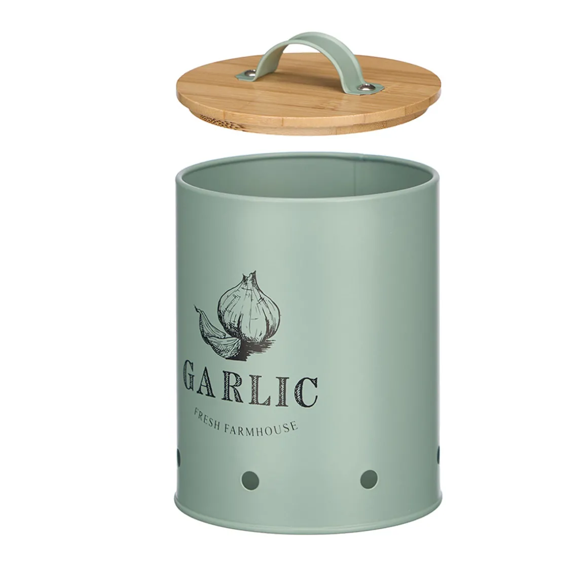 Lata para alhos verde de metal com tampa bambu